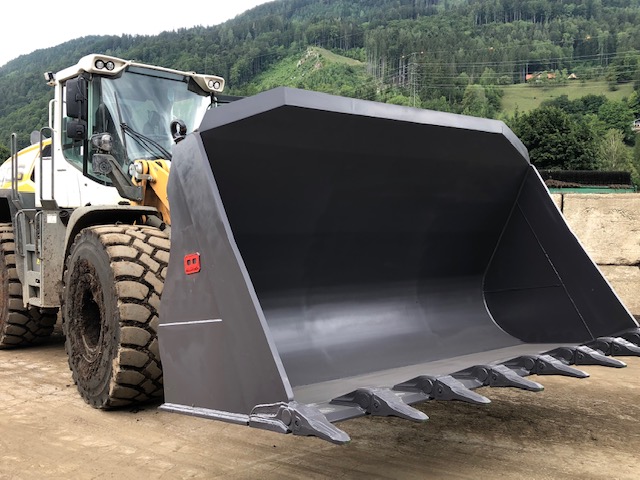 Schaufel für Radlader mit Schnellwechsler-Aufnahme passend für Volvo-System, Erdbauschaufel, Breite: 3080 mm, Inhalt: 3 m³ Wassermaß.